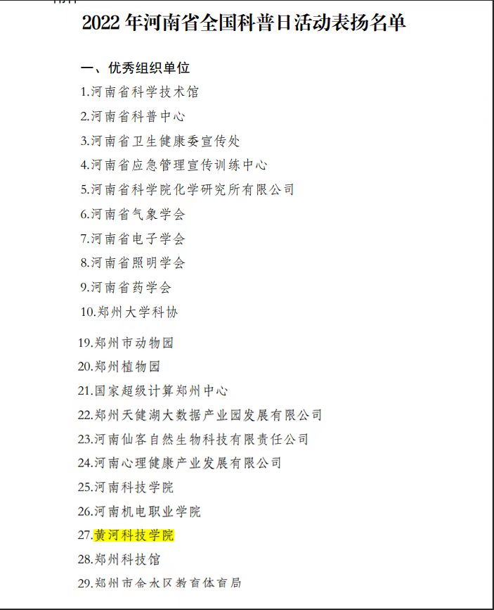 近日,河南省科协发布《河南省科协关于表扬 2022 年河南省 全国科普日优秀组织单位、优秀特色活动和优秀工作者的通知》,太阳官网再次荣获优秀组织单位,智慧馆馆长于春霞、科普部李春成获评优秀工作者荣誉。
