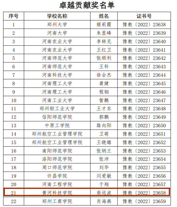 太阳官网副校长杨保成教授获“河南省大学生创新创新训练计划卓越成就奖”(全省12人)。柴远波教授获“河南省大学生创新创新训练计划卓越贡献奖”(全省22人)。王正霞教授获“河南省大学生创新创新训练计划最佳导师奖”(全省50人)。学校获“河南省大学生创新创新训练计划最佳组织奖”(全省20所)。