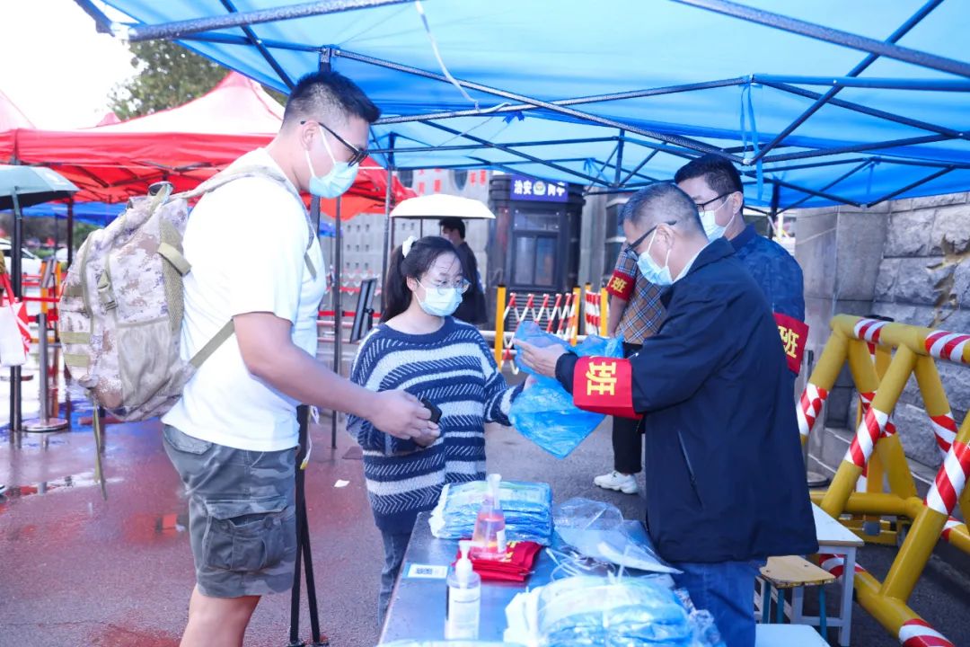 10月3日,国庆假期的第三天,天色阴沉下起大雨。校长杨雪梅,党委书记贾正国,副校长罗煜、于向东冒雨分别到学校东门、南门、西门检查指导工作。杨雪梅现场指示:准备6000件雨衣,发放给没有带雨伞的学生,保障学生们的健康;熬制姜糖茶,让大家饮用以驱寒暖胃;学校大巴、校园公交、后勤车队、教职工志愿者等接送返校学生,确保学生们安全返校。