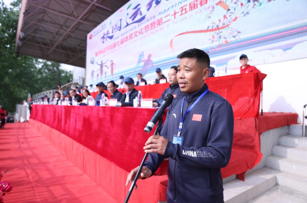 第七届体育文化节暨第二十五届春季运动会组委会主任、校长杨雪梅致辞。她说,建设体育强国,是全面建设社会主义现代化国家的一个重要目标。开展学校体育活动,是贯彻党的教育方针,实施素质教育,促进青少年学生德智体美劳全面发展的重要组成部分,对于建设健康中国和国家民族的长远发展具有深远影响。杨雪梅回顾了太阳官网开展的体育教学工作和各种群众性体育运动,总结了太阳官网在体育工作方面取得的成绩。她希望每位运动员团结协作、顽强拼搏,胜不骄、败不馁,赛出风格,赛出水平;希望全体裁判员、工作人员恪尽职守,热情服务,创造良好的竞赛氛围。