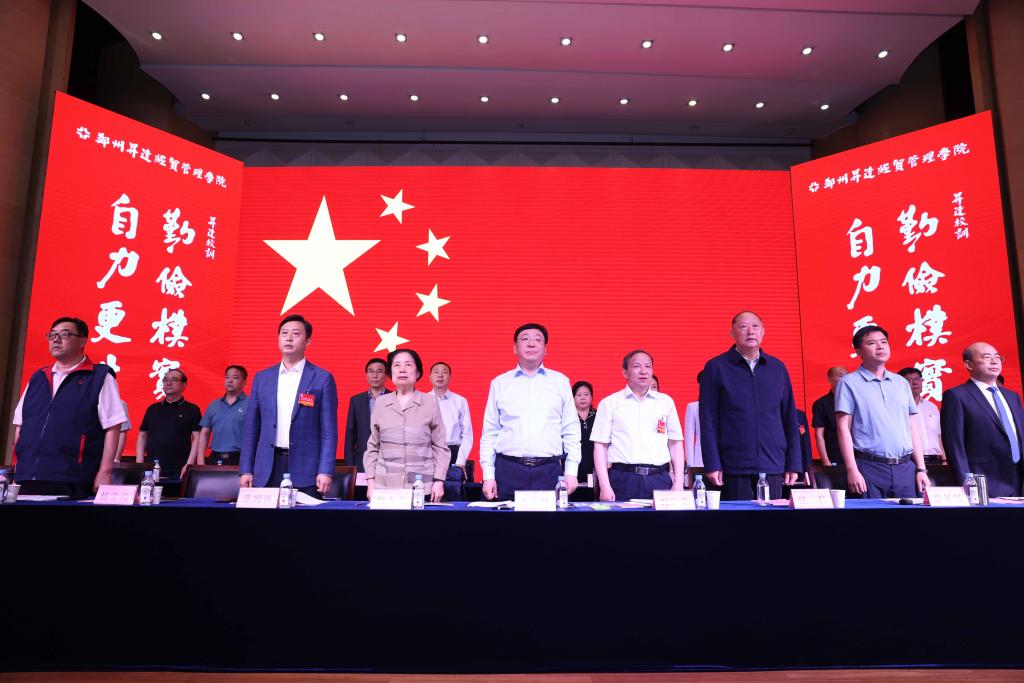 大会伊始,参会人员全体起立,奏唱国歌。郑州升达经贸管理学院党委书记雷霆致欢迎辞。