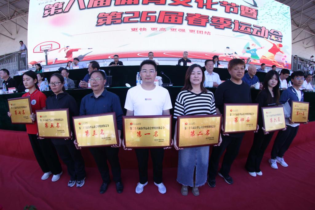 大会通报了各类竞赛成绩,对获奖单位和个人进行了表彰。艺体学部、商学部获得学生团体操表演一等奖;艺体学部2022级视觉传达设计专业朱景杨同学获得运动会会徽设计优胜奖;艺体学部、医学部获得教工团体比赛奖项第一名;电子材料科教中心、机电交通科教中心、大数据与计算机应用科教中心获得优秀组织奖;经济与管理科教中心、外语科教中心、医学部一队获得体育道德风尚奖;艺体学部、附属医院获得特殊贡献奖;电子材料科教中心获得甲组学生比赛第一名、2023级运动训练专业获得学生体育专业组第一名。大会还对庆祝40周年校庆体育竞赛活动团体总分前八名的集体进行了表彰。