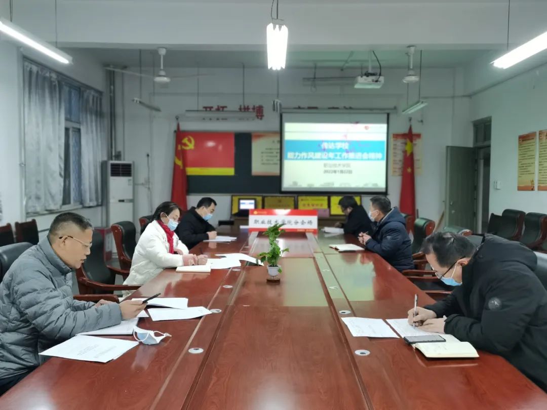 为全面贯彻落实学校关于“能力作风建设年”活动部署要求,深入推进学院能力作风建设,1月22日,职业技术学院召开“能力作风建设年”活动线上线下混合式会议。学院党政班子成员和“能力作风建设年”活动领导小组成员出席会议。会议由分党委副书记张松炎主持。首先宣读学了学院“能力作风建设年”活动实施方案、学院提交的“能力作风建设年”项目清单。