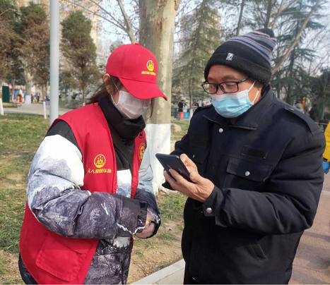 国际学院2021级金融一班新生张乾坤在平顶山市中兴路街道做社区疫情防控志愿者,协助社区工作人员进行扫码测温。在省内疫情形势严峻下,市民积极进行核酸检测。在此期间,张乾坤的主要工作是排查健康码、行程码是否出现红黄两色,对外地返平人员进行排查并宣传疫情防控政策、帮助居民注册鹰城健康码。