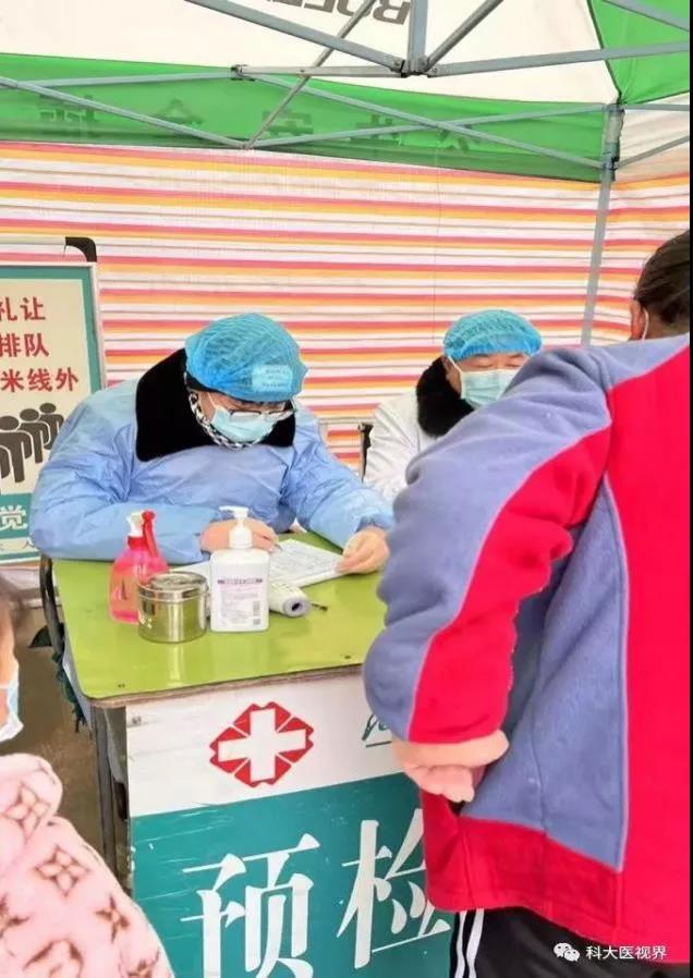 1月14日,高庄镇部署全民核酸检测工作,孔殿武同学和部分志愿者被镇政府统一调配到丁瓦房村进行志愿者服务工作,帮助当地村民做好核酸检测的信息采集,对行动不便和不会使用手机进行二维码预约检测的老人进行帮扶,维持检测秩序。