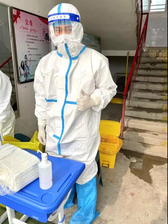 新冠肺炎疫情时刻牵动着大家的心,疫情就是命令,防控就是责任。曹晓庆作为一名医学生,也作为一名预备党员,在校外实习期间积极加入到核酸检测队伍中,她主要负责采样,在望湖花园小区奋战了5个小时完成了核酸检测,共参与了6次核酸检测。他说,希望疫情能尽快得到控制,一切都能好起来!早日能吃饭妈妈做的饭!