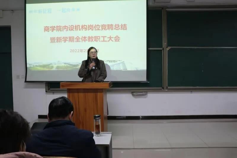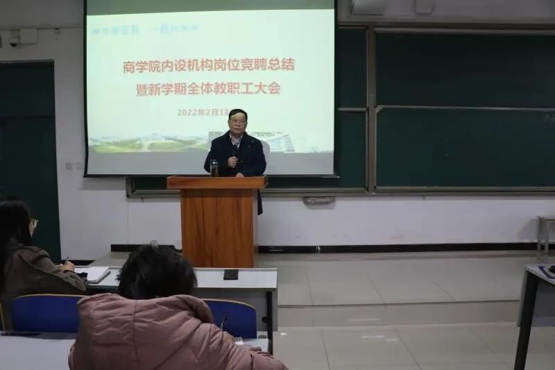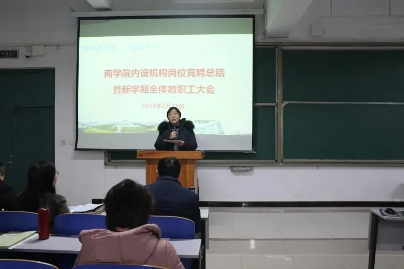 2月18日,商学院召开商学院内设机构岗位竞聘总结暨新学期全体教职工大会,院长喻新安、分党委书记王威等学院领导参加会议。会议由常务副院长阎爱武主持。