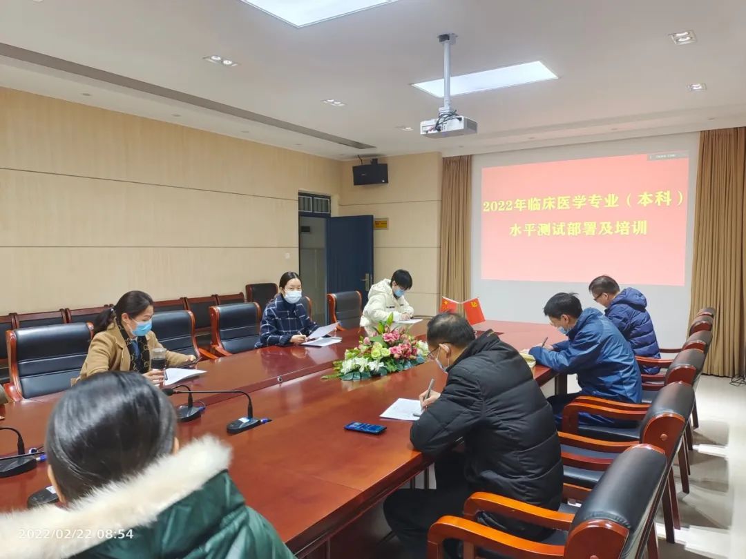 为做好新冠肺炎疫情防控常态化下医学院校临床医学专业(本科)水平测试(以下简称“水平测试”)工作,国家医学考试中心、全国医学教育发展中心联合召开水平测试工作线上会议,会议内容为2021年水平测试工作总结、2022年水平测试工作部署及水平测试考务管理信息系统操作培训。医学院院长黄涛,院长助理闫春生、郭志刚,现代教育技术中心宋朝,院教学办主任郝红英,医学系主任郭晓娜等参加此次培训会议。
