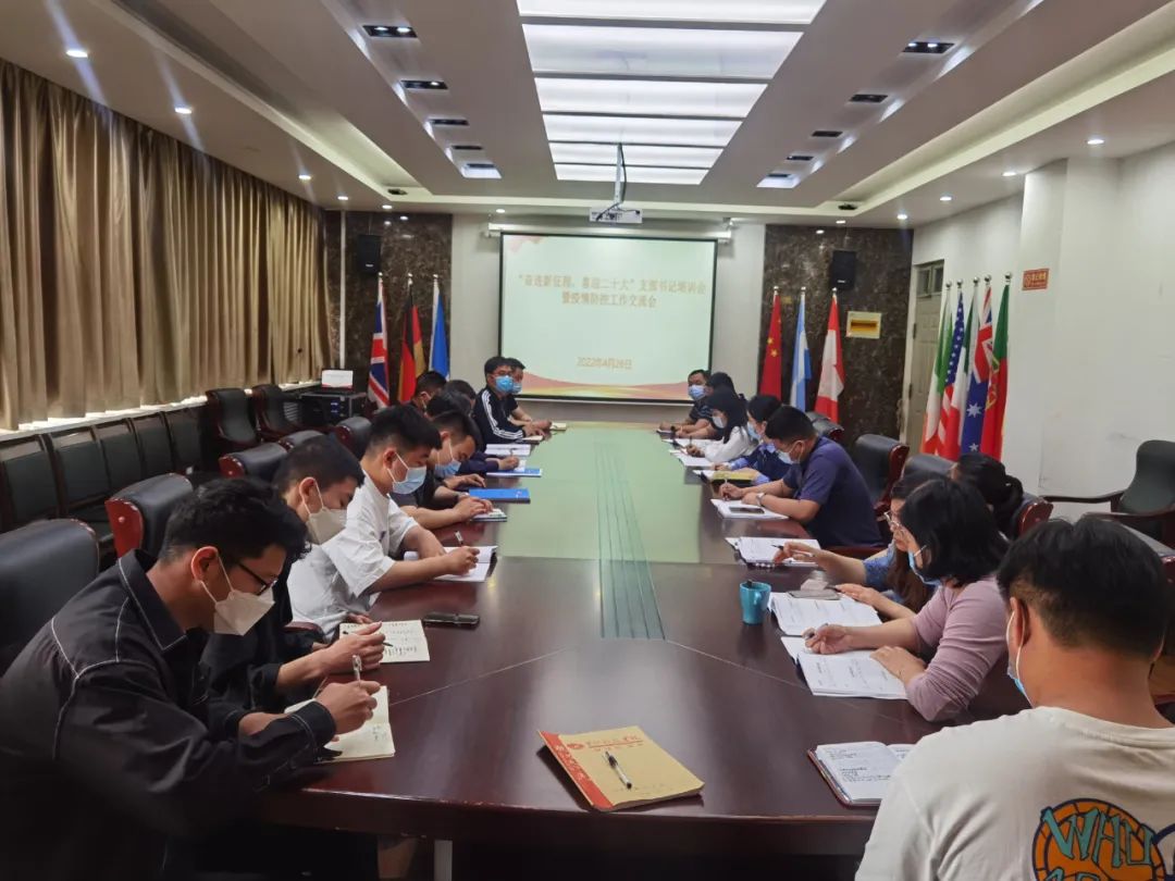 近日,国际学院开展"奋进新征程,喜迎二十大"支部书记培训会暨疫情防控工作交流会。学院分党委副书记郭建伟、学生党支部书记和全体辅导员参会。