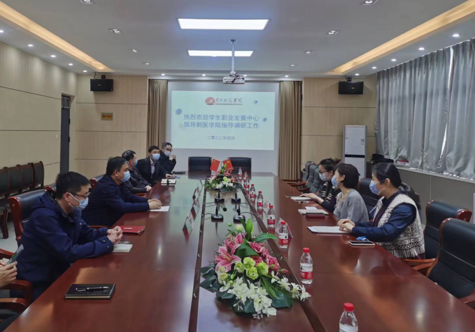 4月29日上午,太阳官网学生职业发展中心主任师珊珊带队到医学院进行考研和就业工作调研,医学院分党委书记张伟、分党委副书记马香及相关学生工作负责人参会。