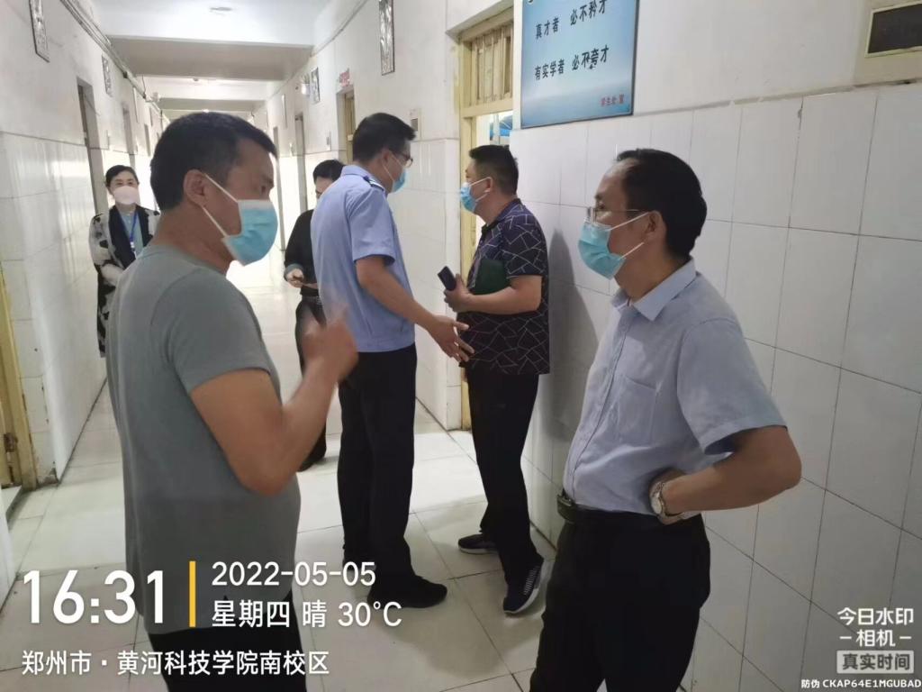 5月5日,为深入排查宿舍楼区安全隐患,做好防汛工作准备,副校长罗煜带领校产处处长尚有善、建设指挥部综合办副主任黄世勇、保卫处副处长冯峰、学生处宿管中心主任周洪登一行深入商学院学生宿舍实地检查走访,商学院党政学工办副主任冉俊伟陪同。