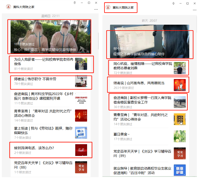 加强宣传,提高师生疫情防控意识。利用黄科院商学院之家公众号平台和网站,班级群,朋友圈等向师生推送官方权威发布,让师生通过正规渠道了解疫情现状,不信谣不传谣。同时在新媒体平台推送抗疫政能力,增强师生抗疫信心和决心,同时提醒大家做好安全防护,特别是戴口罩。