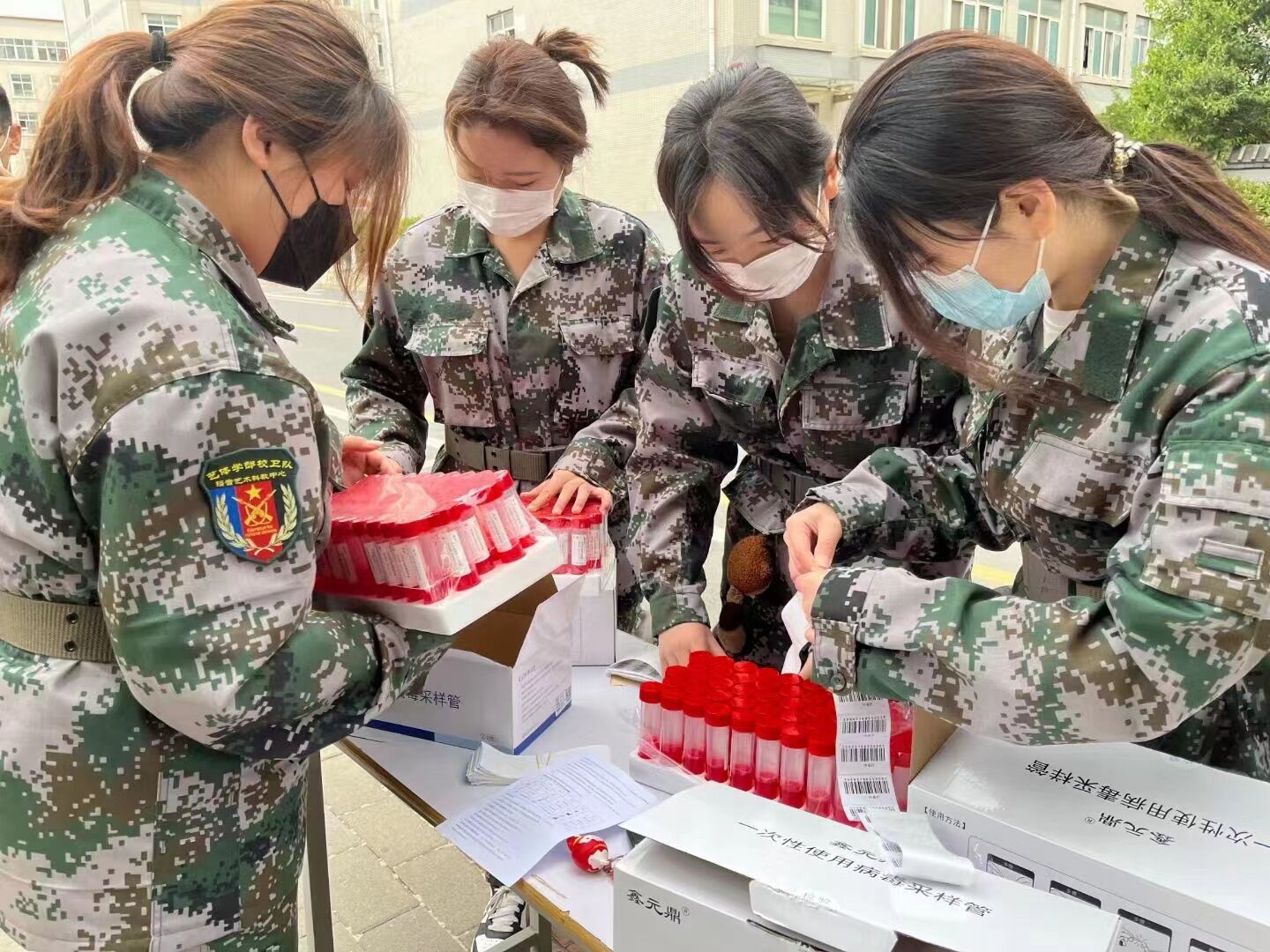 还有扫码员、掰管员,都是由教师志愿者担任。他们穿上防护服认真协助检测人员,确保每一个检测样本安全进入到试管中。舞蹈科教中心的许泽乾作为扫码员,自2020年起就一直参与志愿服务,每次疫情到来的时候,就主动请缨。他说:“我也记不清参加过多少次扫码工作了,虽然很累,但是只要是学校有核酸检测任务,我都会报名参加。”