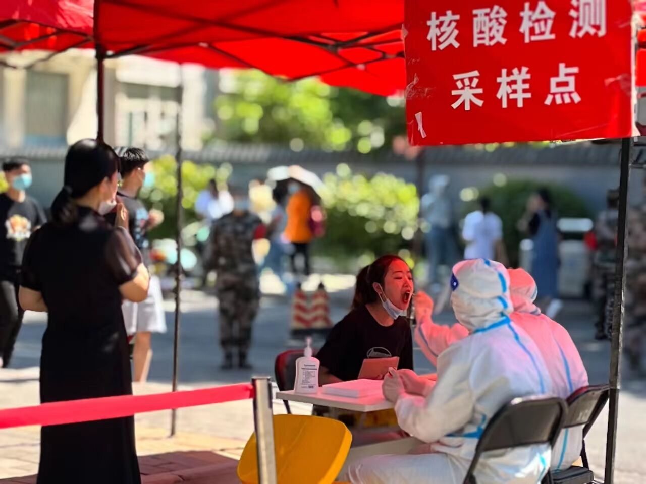 疫情防控专班成员在白云庆的带领下,每天早上七点,就到达现场开碰头会,传达最新的防控精神。无论是晴天、雨天,只要开展核酸检测工作,他们就会一直在现场直到当天的核酸检测工作结束,及时处理现场的突发情况。