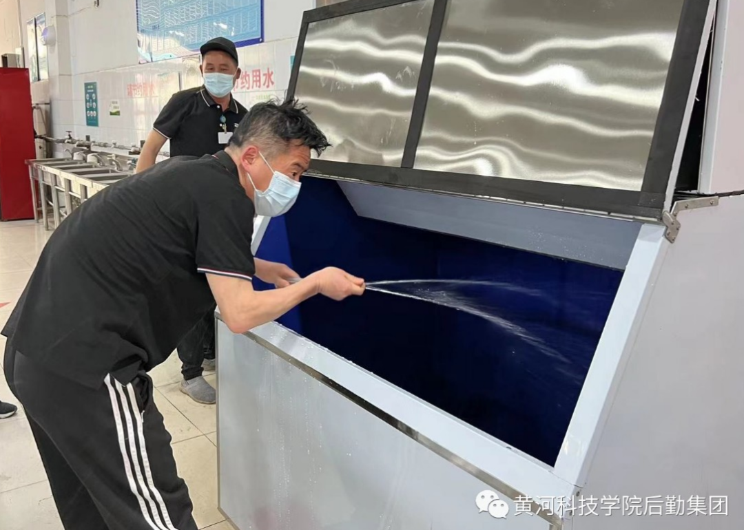5月的郑州已然是骄阳似火,加之又处于封控期间,学生难免会产生烦躁心理。校领导紧急部署,制定了一系列防暑降温措施。胡勇带领部门副主任张航航,加急调研购置了一批制冰机,及时为学生提供了冰块用于防暑降温,为他们枯燥的生活和学习带来一丝凉意,受到了学生们的一致好评;还加急调研购置了一批冷风机,用于雁鸣餐厅、大学餐厅和职业技术学院餐厅,为给学生创造了一个清凉的就餐环境。