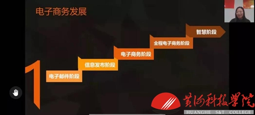 主讲人——马妍副教授。马妍老师首先介绍了电子商务的基本情况以及电子商务“是什么”“学什么”“用做什么” 其次介绍了电子商务的就业前景、研究方向以及专业定位。随后简单阐述了电子商务课程内容、涉及领域以及大学三年中各个阶段性学习目标。最后马妍老师以连线的方式一一解答了同学们的问题。