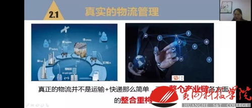 主讲人——商学院管理科教中心副主任吴玉芝。首先,吴玉芝老师对选择商学院的同学们表示欢迎,并向同学们简述商学院历史。之后吴玉芝老师向同学们提出了“物流专业能做什么?"的问题,引发同学们的思考。随后她从专业未来发展、就业前景、专业内容等三个方面向同学们讲解物流管理专业,从物流管理的行业分布与就业地区分布两方面展开分析,并着重讲述了物流管理专业的岗位层次和主要发展方向,同时向同学们解释了一直以来对物流管理就是运输和快递的误解,从而进一步强调物流管理是整个产业链各方面的整合重构,而非运输和快递那么简单。