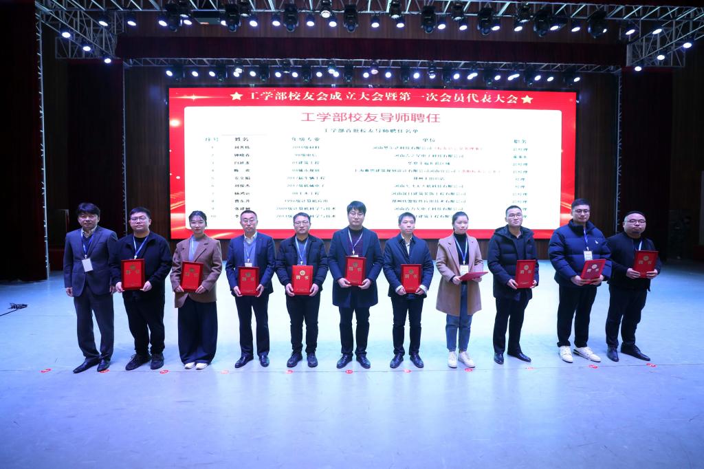与会领导与嘉宾以及新当选的第一届工学部校友会领导集体合影留念、与工学部校友理事会第一届全体理事合影留念、与全体与会校友代表合影留念。
